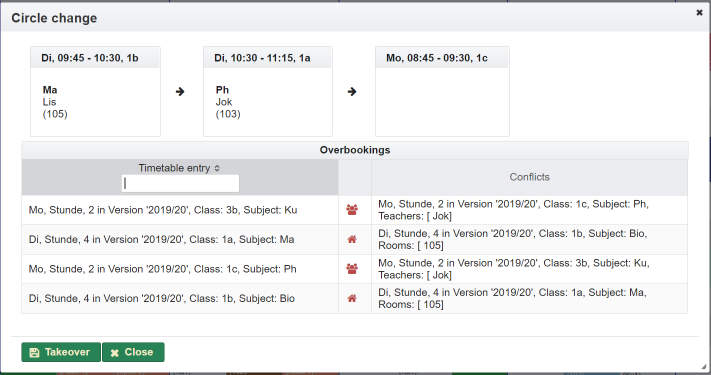 Die Bedienung der Ansichten für Klassen, Lehrer oder Räume erfolgt im