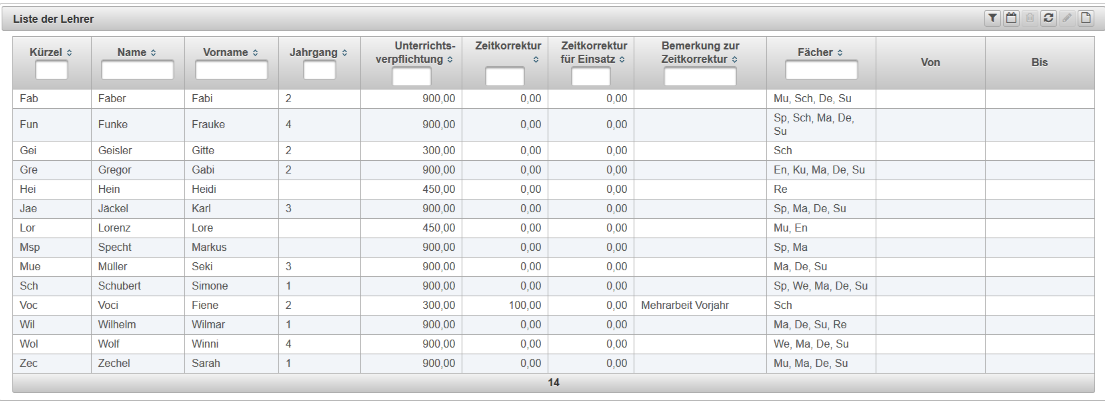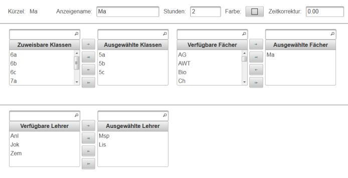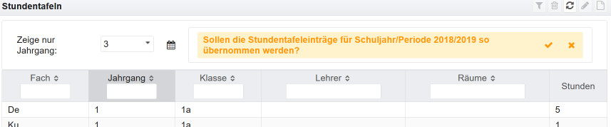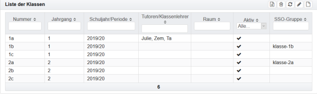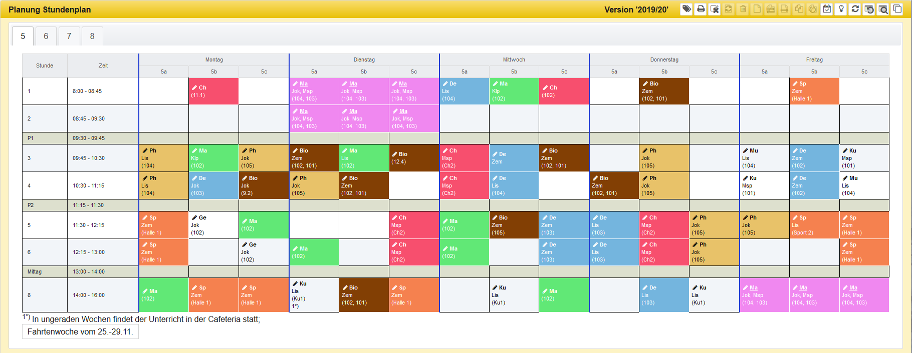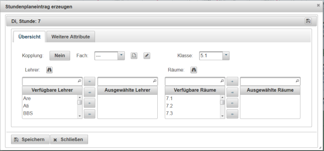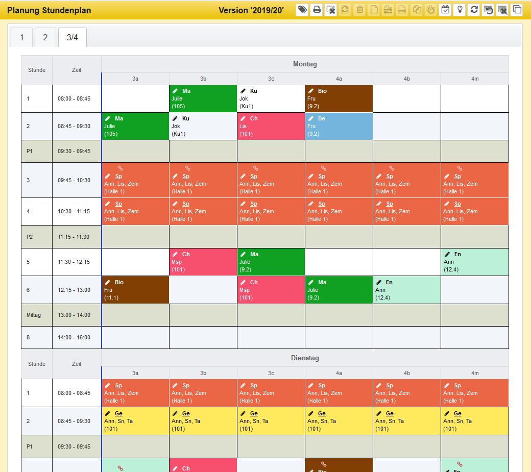 Die Bedienung der Ansichten für Klassen, Lehrer oder Räume erfolgt im Wesentlichen gleich. Im Folgenden wird es am Beispiel der Ansicht für eine Klasse erläutert.