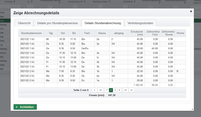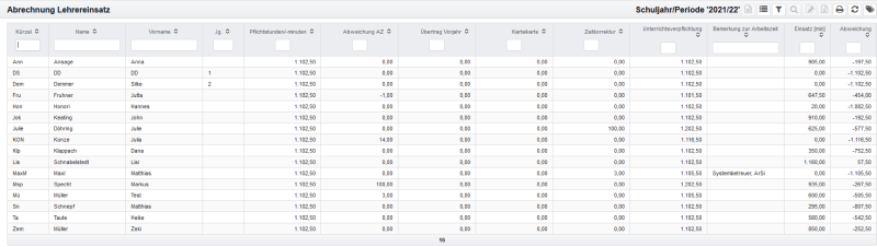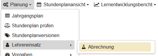 In der Abrechnung des Lehrereinsatzes werden ebenfalls nur freigegebene Vertretungspläne berücksichtigt. Das Gleiche gilt für die Anzaige von Vertretungsplänen in der Planungssicht.