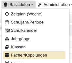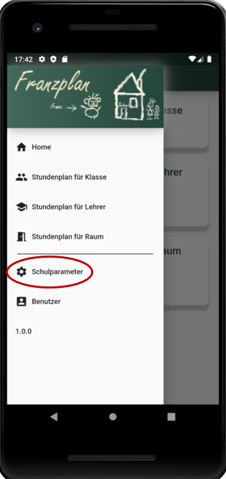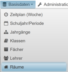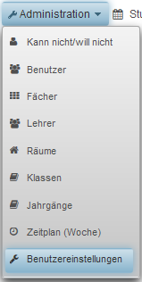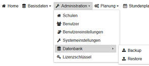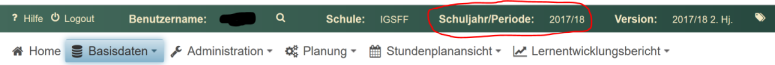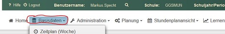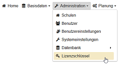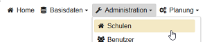 Zur Konfiguration des Schulservers öffnet man das Menü in der Kopfzeile und klickt auf den Menüpunkt Schulparameter.