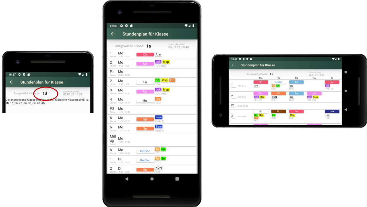 Die Stundenpläne werden sowohl in der Porträtansicht als auch in der Queransicht angezeigt.