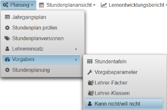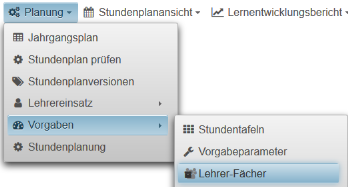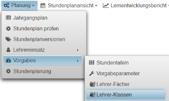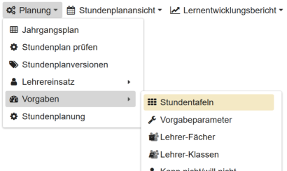 In diesem Falle kann man im Abschnitt Vertretungsplan einfach einen neuen erzeugen oder aus der Liste der vorhandenen Vertretungspläne einen zuweisen .