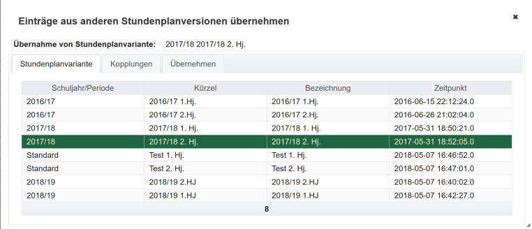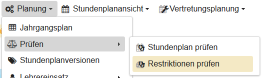 Da sich die Vertretungsplanung immer auf ein bestimmtes Datum bezieht, ist es im Gegensatz zur Stundenplanung von Bedeutung, dass die Zeitangaben für Start und Ende des Schuljahres/der Periode und ebenso für die Stundenplanversionen korrekt sind. Vertretungsfälle, Maßnahmen und auch die Vertretungspläne müssen innerhalb dieser Zeiträume liegen, damit die Planung funktioniert. Anderenfalls wird ein entsprechender Fehler gemeldet.