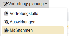 Wenn kein Vertretungsfall ausgewählt ist, muss zumindest ein Vertretungsplan zugewiesen sein, damit Maßnahmen dargestellt werden können.