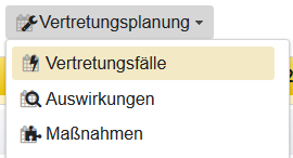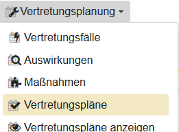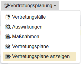 Vertretungspläne Von hier aus ist die Erzeugung eines Vertretungsplans oder das Wechseln in die Ansicht der Vertretungspläne möglich.