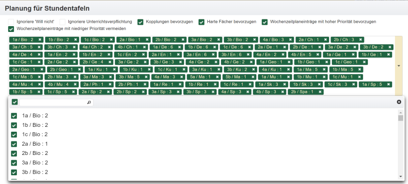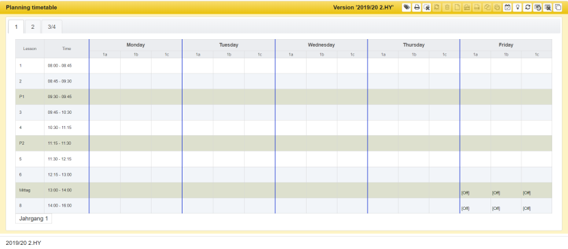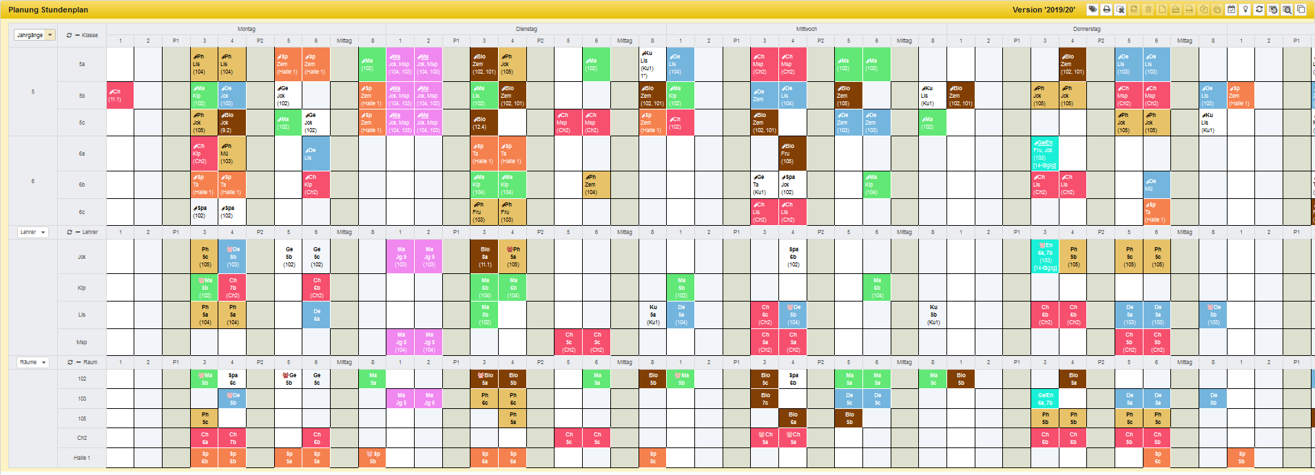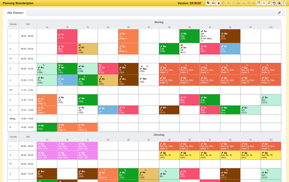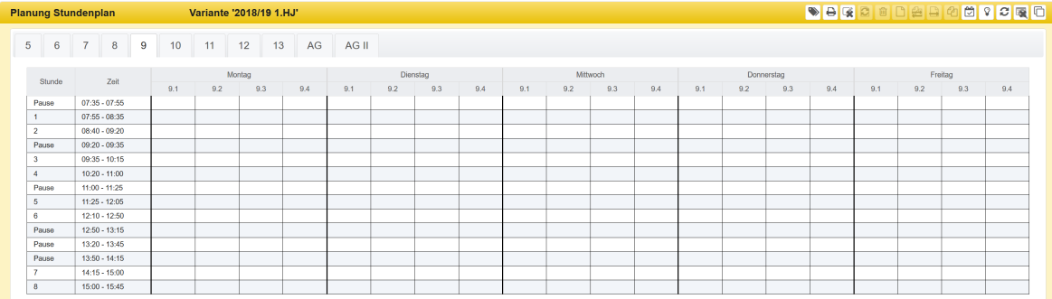 Hier ist der Stundenplan für alle Klassen aufgeführt.