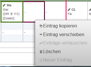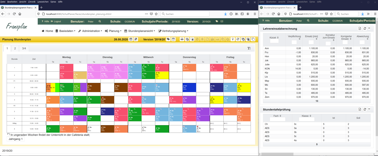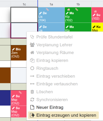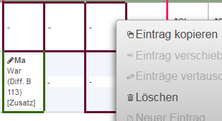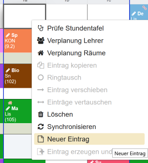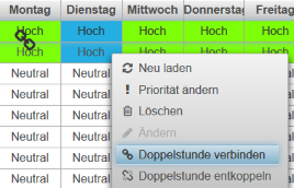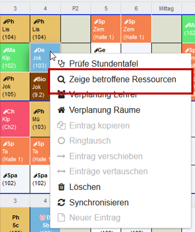 Das Markieren einer Auswirkung bewirkt die Darstellung der Auswirkung im Stundenplan. Außerdem kann man dann mit der rechten Maustaste wiederum verschiedene Tätigkeiten anwählen.