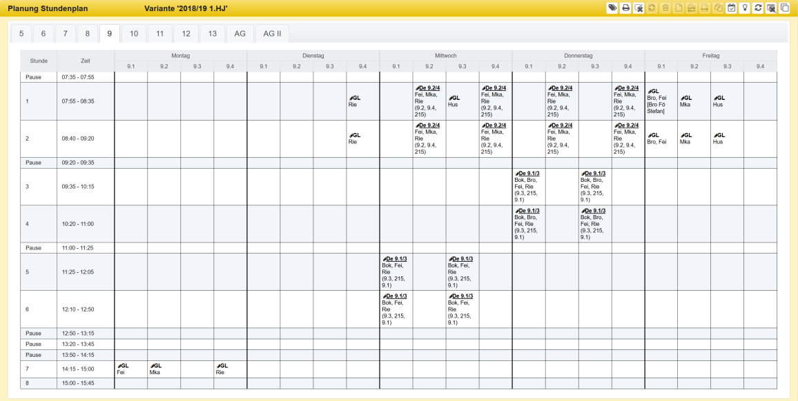 12.2 Ansicht der Stundenpläne