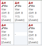 Ressource Hier wird die betroffene Ressource mit ihrem Kürzel/ihrer Raumnummer aufgeführt. Am Symbol ist zu erkennen, welcher Art die Ressource zuzuordnen ist \
