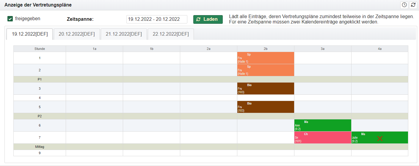 - Freigegeben: Der Vertretungsplan ist freigegeben. Das Freigabedatum ist gültig.