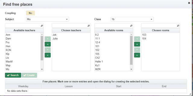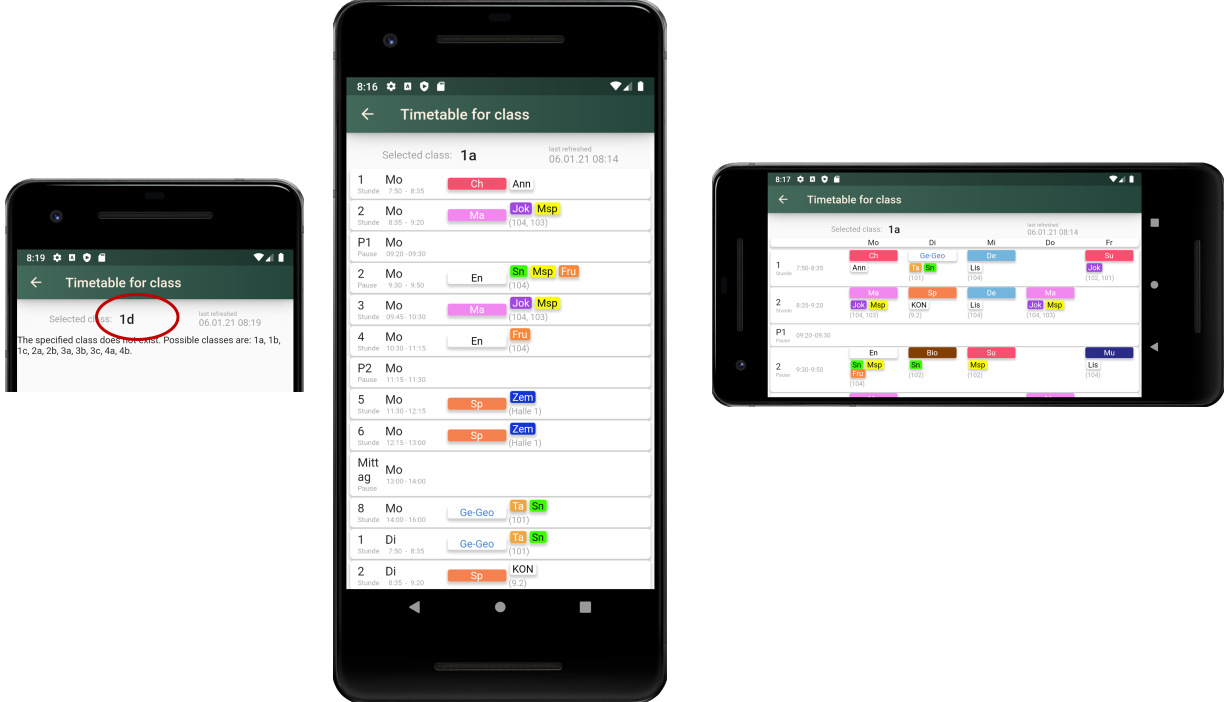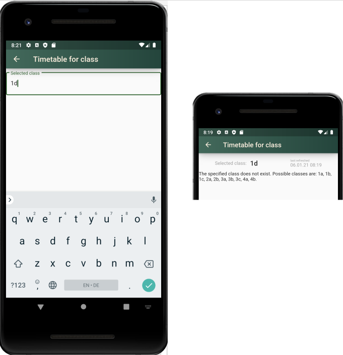 eingegebene Klasse (der Raum oder der Lehrer) nicht existieren, erfolgt