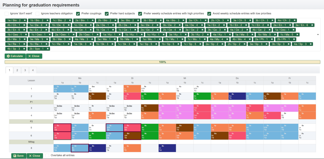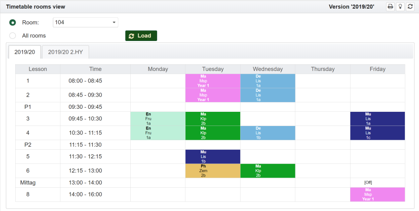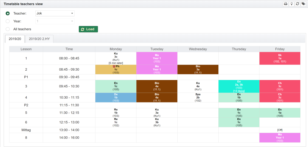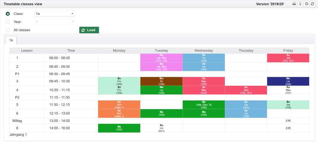 Stundenpläne für Lehrer, Räume oder Klassen. Die Planung kann allerdings