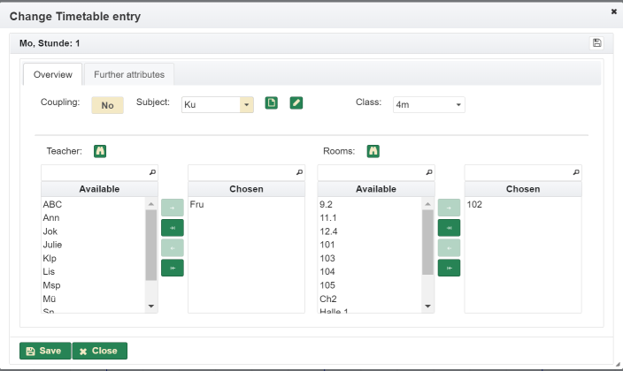gewünschten Klasse (dem Lehrer oder Raum) gefragt. Sollte die
