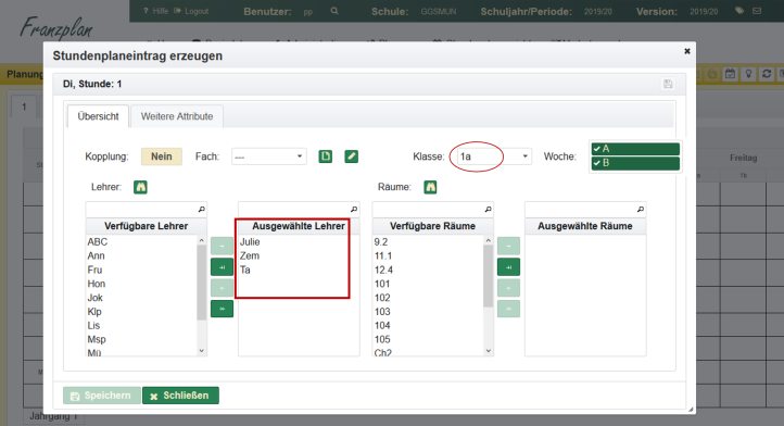 Der Dialog zum Erzeugen eines Stundenplaneintrages enthält manchmal